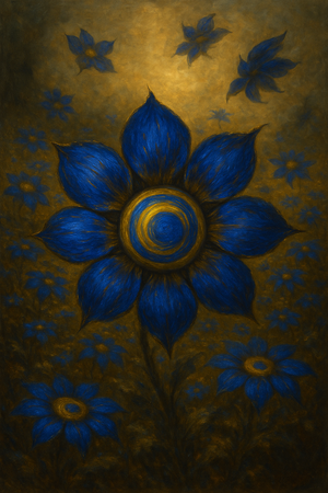 Les pétales bleus et le cœur doré de la fleur symbolisent la dualité de la Compagnie : la paix dans la guerre et la lumière dans l’obscurité. Pour les philosophes et poètes, elle représente l’idée de la seconde chance : un héros tombé peut se relever, tout comme une civilisation peut renaître de ses ruines.